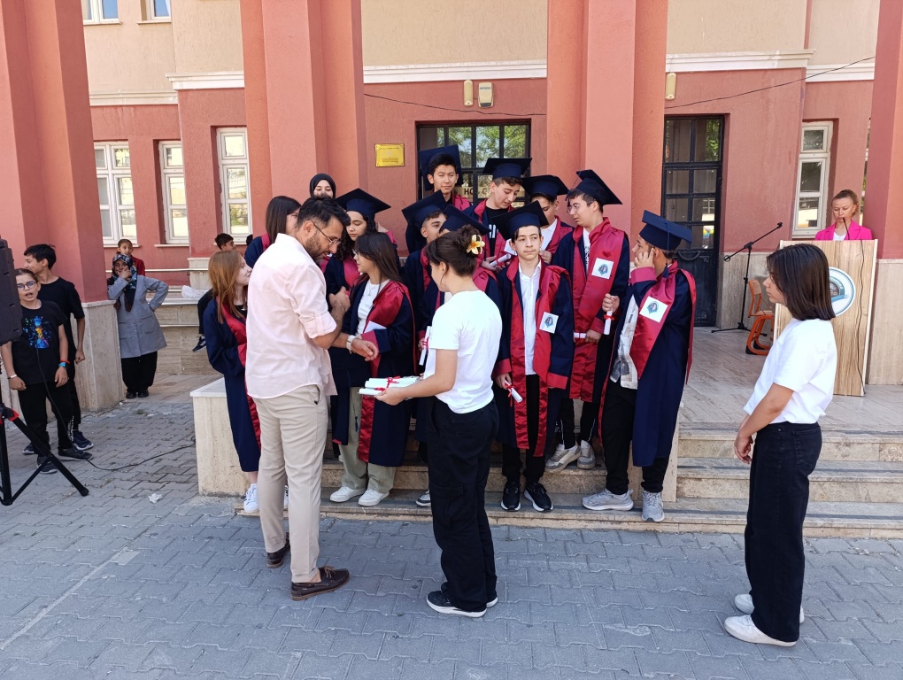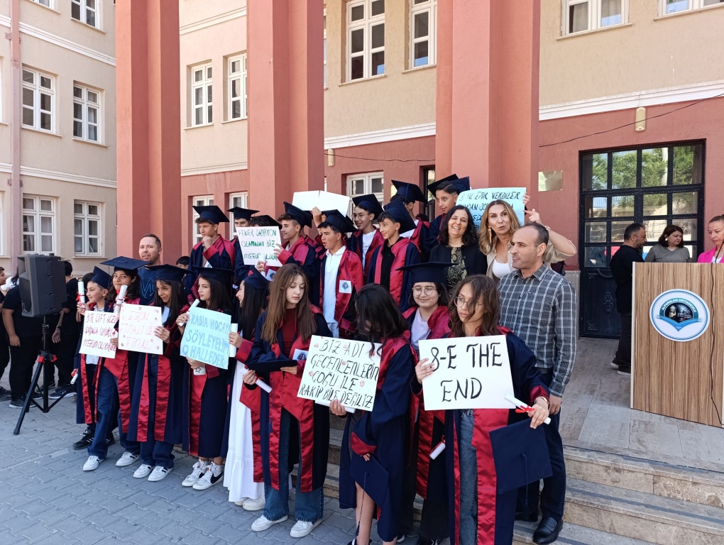 2025 yılı 8. sınıflarımız için mezuniyet töreni düzenlenerek öğrencilerimizin temsili diplomaları verildi.Okul müdürümüzün anlamlı konuşmasının ardından okulumuzda ilk 3'e giren öğrencilerimize hediyeleri verildi ve kep atma töreni gerçekleştirildi. Mezun öğrencilerimizi tebrik eder; sağlıklı, başarılı ve mutlu bir yaşamlarının olmasını temenni ederiz. Bu güzel günün gerçekleşmesinde katkısı bulunan okul idaremize ve öğretmenlerimize sonsuz teşekkürlerimizi sunuyoruz.
